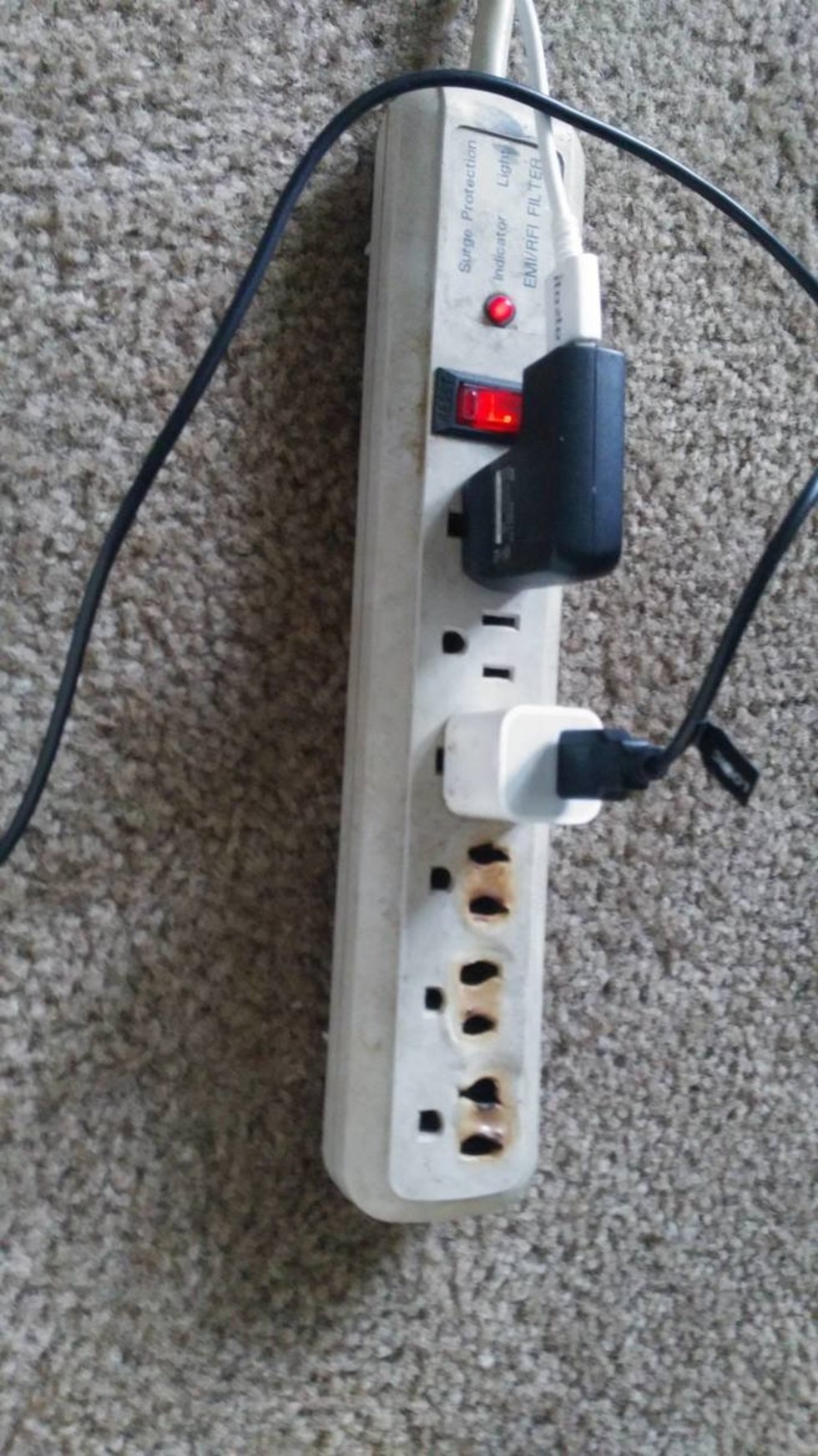 This is an accident waiting to happen. What went wrong here? Three of the six prongs have been burnt to a crisp and I think that it's time to move forward. The strip will understand.